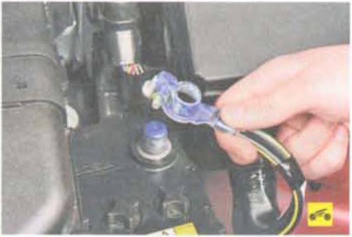 3. Отсоедините провод от клеммы «минус» аккумуляторной батареи.
