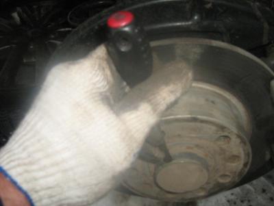 8. Откручиваем болт крепления тормозного диска, и лёгкими ударами молотка у основания ступицы снимаем диск. Используем торкс Т25.