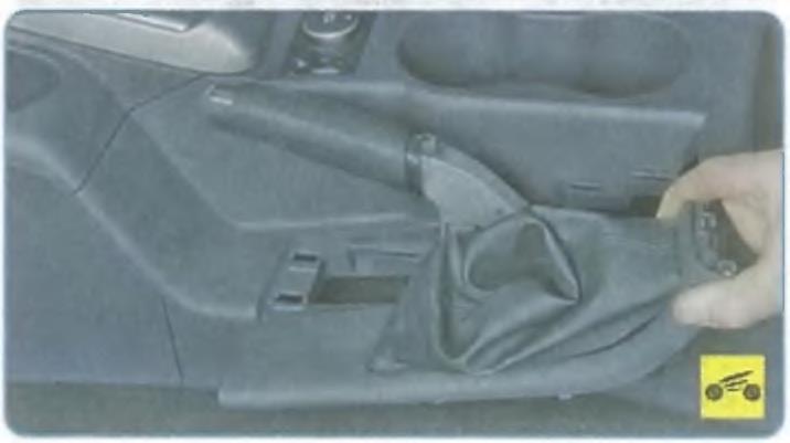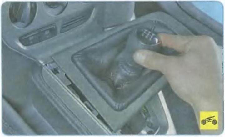 16. Синимите рамку чехла и рукоятку рычага управления коробкой передач.