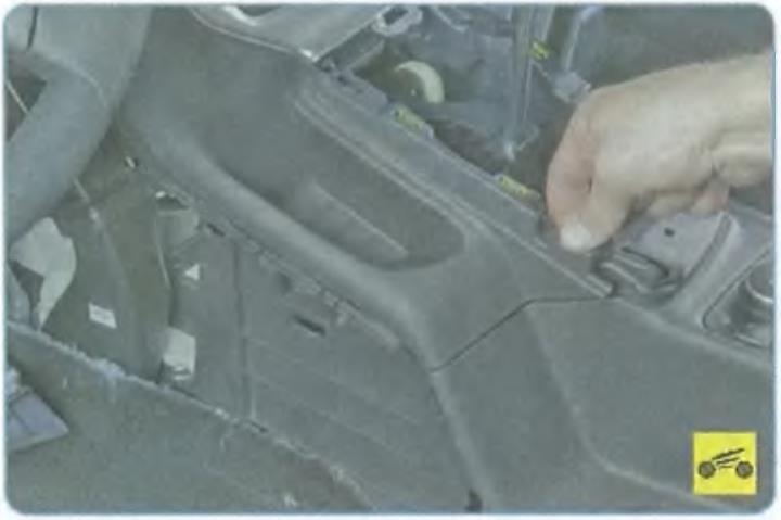 6. Отсоедините нижнюю накладку от панели приборов и отведите ее влево.
