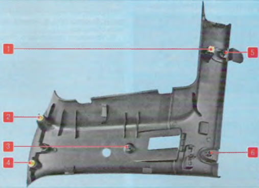 3. Снять с правой и левой стороны обивку 4 центральной стойки.