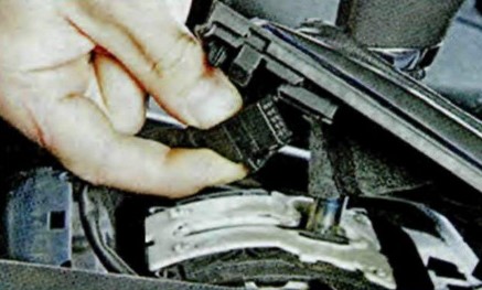 4. Отсоедините колодку жгута проводов от рамки рычага управления коробкой передач.