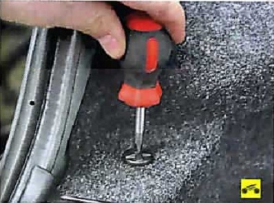 1. Поверните центральную часть пистона крепления задней облицовки багажника так, чтобы она выдвинулась из обоймы пистона...