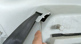 21. Подденьте отверткой и извлеките рамку заднего ремня безопасности из проема облицовки багажного отделения.