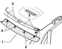 - Отсоедините облицовку перекрытия задка (1) в четырёх пружинных зажимах (3) и снимите перекрытие.
