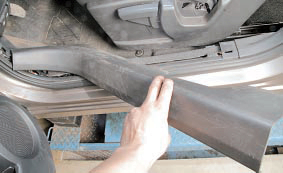 4. Преодолевая сопротивление фиксаторов, снимите облицовку порога передней двери.