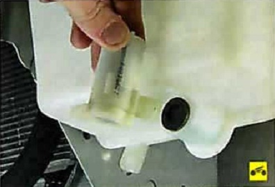 3. Отсоедините шланг омывателя от штуцера насоса и слейте жидкость из бачка омывателя.