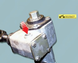 7. Ослабьте хомуты и отсоедините со стороны моторного отсека шланги слива и подачи жидкости.