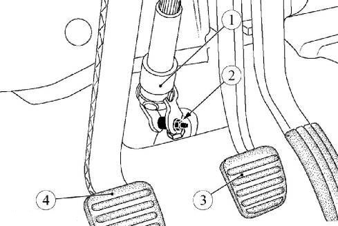 2. Если была снята педаль тормоза – установите ее на кронштейн педального узла.