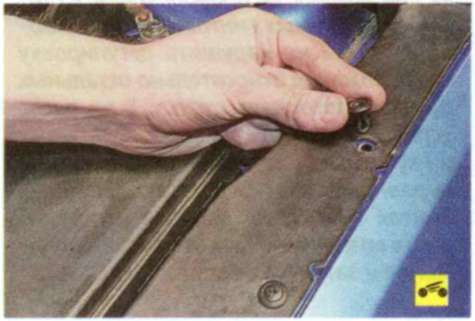 11. Выверните болт крепления крыла к передней стойке, расположенный под декоративной накладкой.