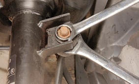 10. Очистите от грязи резьбовую поверхность болтов крепления поворотного кулака к амортизаторной стойке.