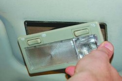 3. Преодолев сопротивление фиксаторов, снимите плафон освещения салона.