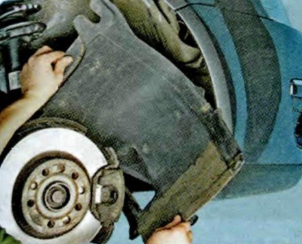 6. Снимите нижнюю часть подкрылка переднего колеса.