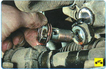 26. Выверните болт-штуцер крепления трубки рулевого механизма...