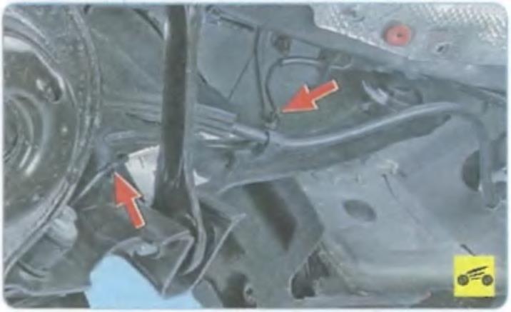 3. Выверните болт крепления держателя тормозного шланга к продольному рычагу.