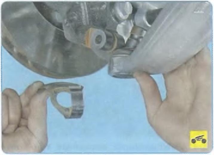 12. Извлеките палец шаровой опоры из отверстия поворотного кулака.