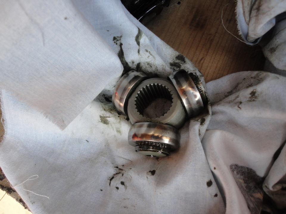 Снимаем трипод, вытираем все тщательно чистой тряпкой от старой смазки. В книге по ремонту рекомендуется еще промыть все детали в керосине, но во-первых и керосин сейчас не знаю где можно купить, а во-вторых я считаю, что если промыть подшипник керосином, то иголки трипода будут сухими и получается, что какое-то время после обратной сборки они будут работать насухую, без смазки, поэтому ничего мыть не стал, а просто тщательно все вытер.