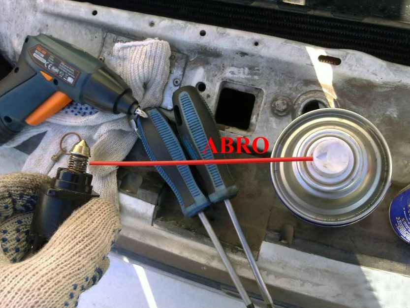 6. Прочистите с помощью очистителя ABRO рабочую часть регулятора холостого хода изнутри (см. первое фото ниже) и снаружи (см. второе фото ниже), а потом смажьте аэрозольной смазкой рабочую часть регулятора.
