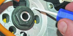 6. Резкими ударами рук сбейте рулевое колесо со шлицев вала.