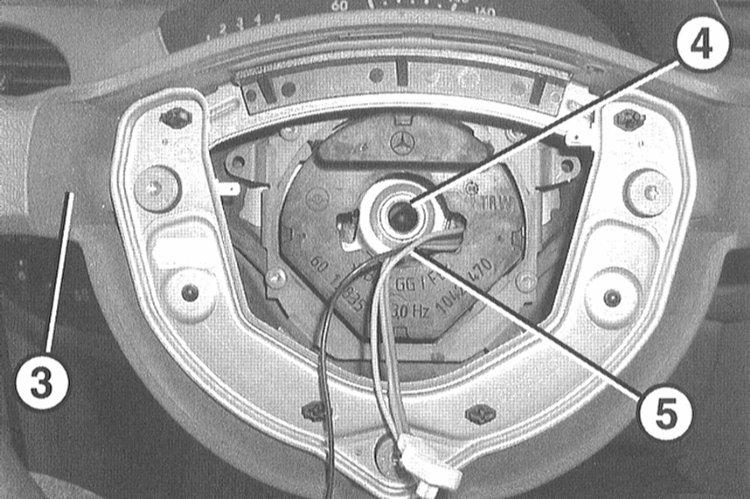 6. Отсоедините рулевое колесо от рулевой колонки, при этом пропустите электрические провода через отверстия.