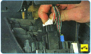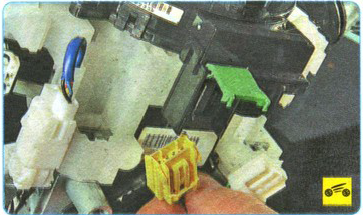 21. Отсоедините колодку жгута проводов от блока подрулевых переключателей.
