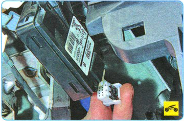 7. ...и разъедините колодку жгута проводов блока подрулевых переключателей управления автоматической коробкой передач (вариатором).