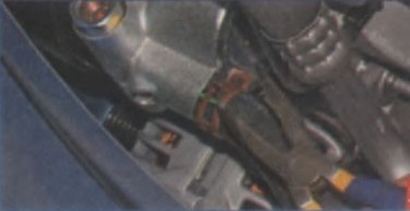 7. Потом извлеките трубку из отверстия штуцера насоса и отведите ее в сторону от насоса гидроусилителя рулевого управления.
