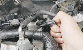 27. Отсоедините колодку от датчика положения впускного распределительного вала (датчика фазы).