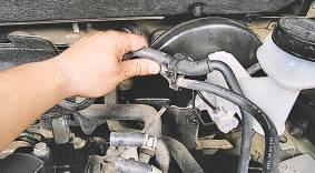 44. Отсоедините фиксатор хомута шланга подачи топлива от кронштейна на головке блока цилиндров и отведите шланг в сторону.