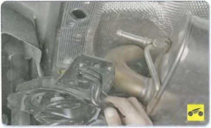 1. Снимите переднюю часть термоэкрана дополнительного глушителя.