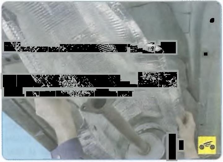 6. Отверните четыре гайки крепления термоэкрана к кузову...