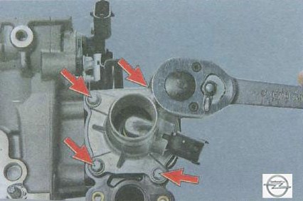 Термостат двигателя Z 16 XER и его корпус представляют собой трудноразборный узел. При попытке извлечения термостата из корпуса могут обломиться стойки крепления термостата. Поэтому заменяйте термостат в сборе с корпусом. На других двигателях автомобилей Opel Astra термостат можно легко вынуть из корпуса.