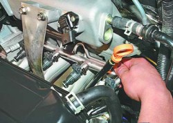Топливную рампу снимают для замены при повреждении, для замены форсунок или для получения доступа к другим узлам.
