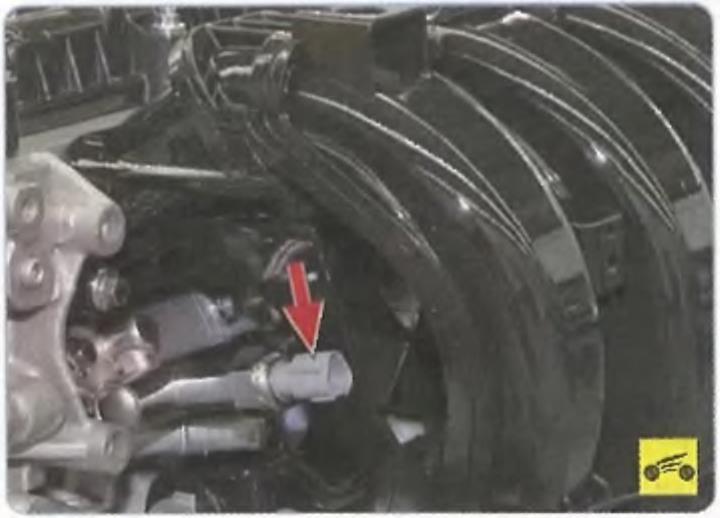 7. Отсоедините от датчика фазы впускного распределительного вала колодку 3 жгута проводов, сжав фиксаторы ее крепления.