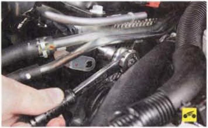 10. И нижний болт крепления правой части щитка топливной рампы.