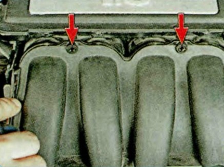 10. Выверните два винта верхнего крепления впускного коллектора к ресиверу. Потребуется отвертка с плоским лезвием.