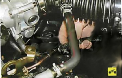 3. Ослабьте затяжку хомута крепления шланга к топливной рампе.