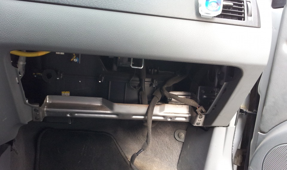 3 самореза сверху (при открытом бардачке) + 2 самореза снизу. Ничего сложного.