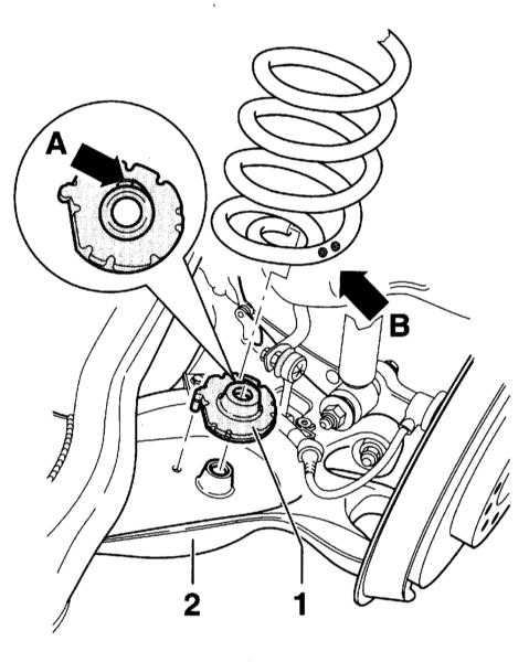 8. Поверните конец пружины так, чтобы он лежал на упоре опоры пружины (стрелка А).