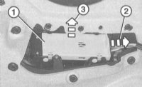 3. Сдвиньте с обратной стороны облицовки двери блокировку (1) в направлении стрелки (2). Отсоедините группу выключателей из держателя (3) и выньте. |