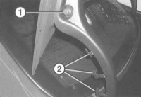 2. Выньте 2 разжимных зажима и одну гайку крепления локера крыла.
