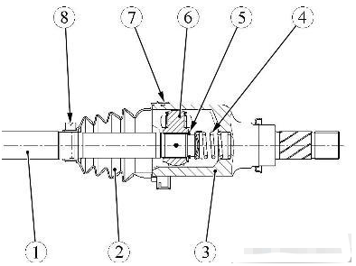 Снять корпус 1, рисунок 13-4, внутреннего шарнира с вала 2 привода. На корпусе внутреннего шарнира нет фиксатора, он снимается без приложения усилия.