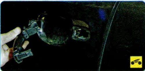 7. Подденьте отверткой и извлеките наконечник троса из ручки передней двери.