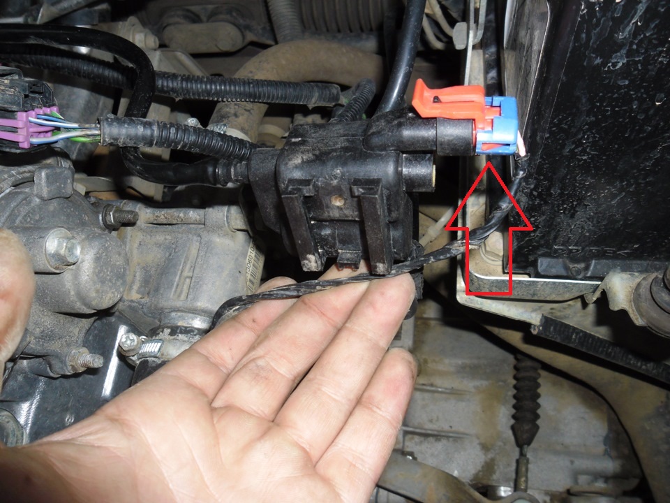 Снимаем клапан продувки адсорбера для замены при выходе его из строя.