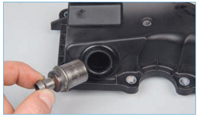 4. Вынимаем клапан вентиляции из отверстия в корпусе маслоотделителя Форд Фокус 2.