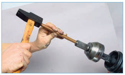 Через выколотку из мягкого металла сбиваем шарнир с вала.