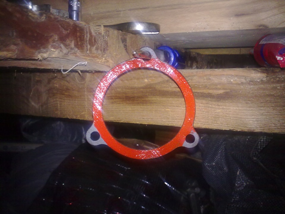 6. Нанесите на обе стороны новой прокладки тонкий слой герметика и, сориентировав прокладку относительно крепежных отверстий во фланце корпуса насоса, приклейте ее к фланцу.
