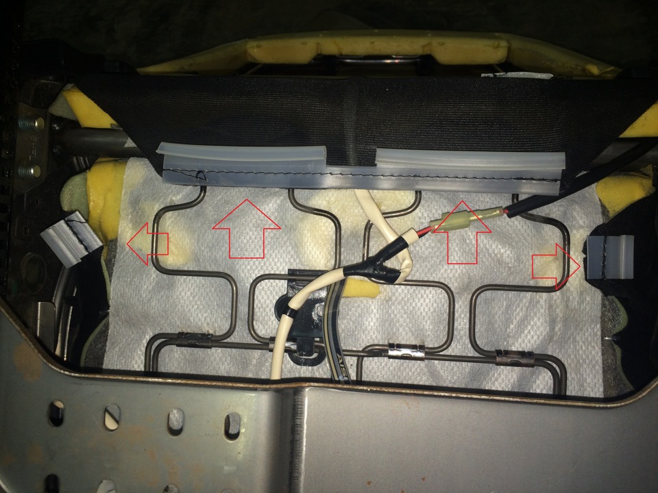 1. На фото показано заднее сидение снизу, стрелки указывают на то что необходимо снять.