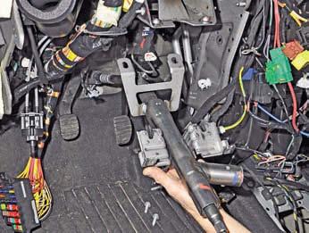 Головкой «на 13» отворачиваем четыре болта крепления рулевой колонки…