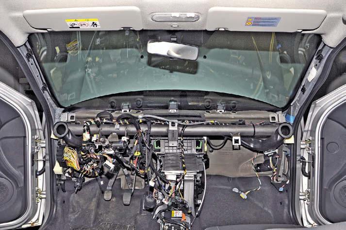 Эти работы необходимо проводить при демонтаже отопителя, радиатора и вентилятора отопителя, а также испарителя кондиционера и при замене жгута проводов.